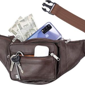Leather Waist Pouch Bag Travel Pouch Passport Holder for Men and Women