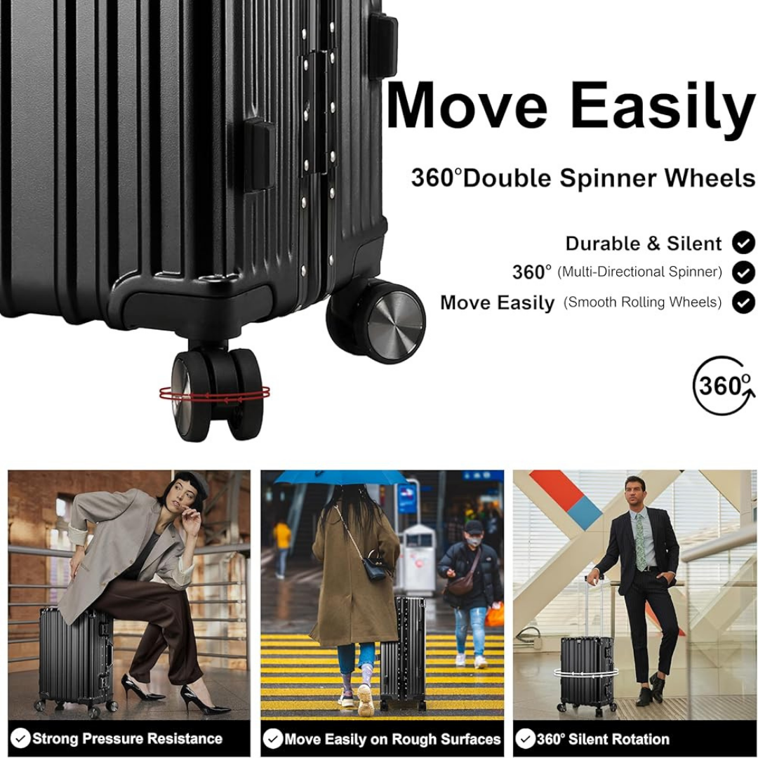 With its spacious interior and high load capacity (30–35 KG), this 28” checked luggage is ideal for long vacations, family travel, business trips, and heavy packing needs. The 360° quiet double spinner wheels ensure smooth, stable, and effortless movement in all directions, even in busy airports.